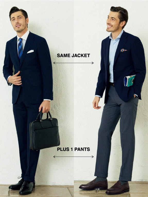 出張に最適な快適さと利便性を備え着回しも自在な2パンツスーツ「トラベラー」- PLUS PANTS SUIT ¥41,800(税込)VIEW MORE