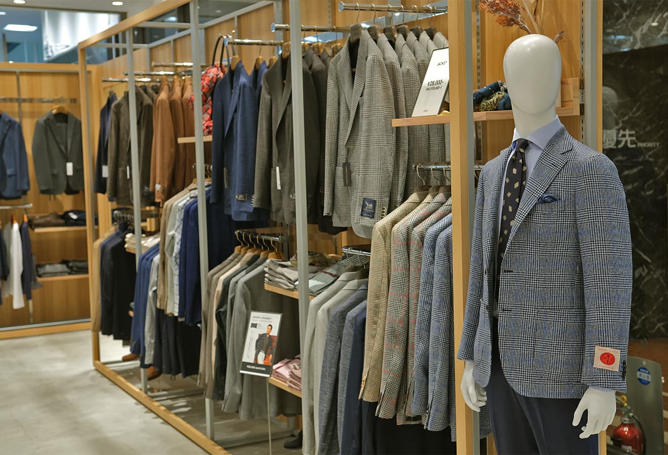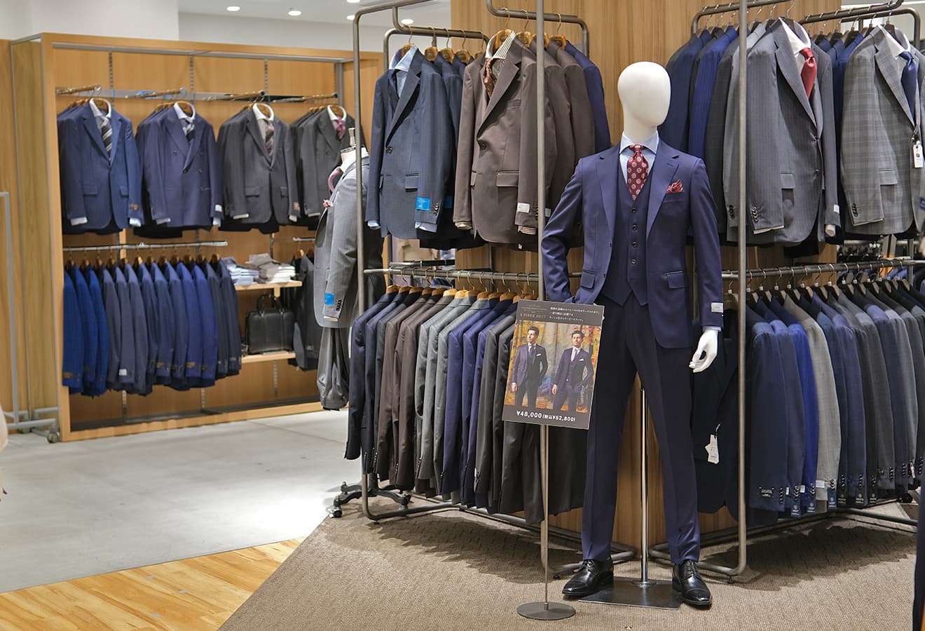 - お客様のご要望を受け、スーツサイズや種類のバリエーションを増設。