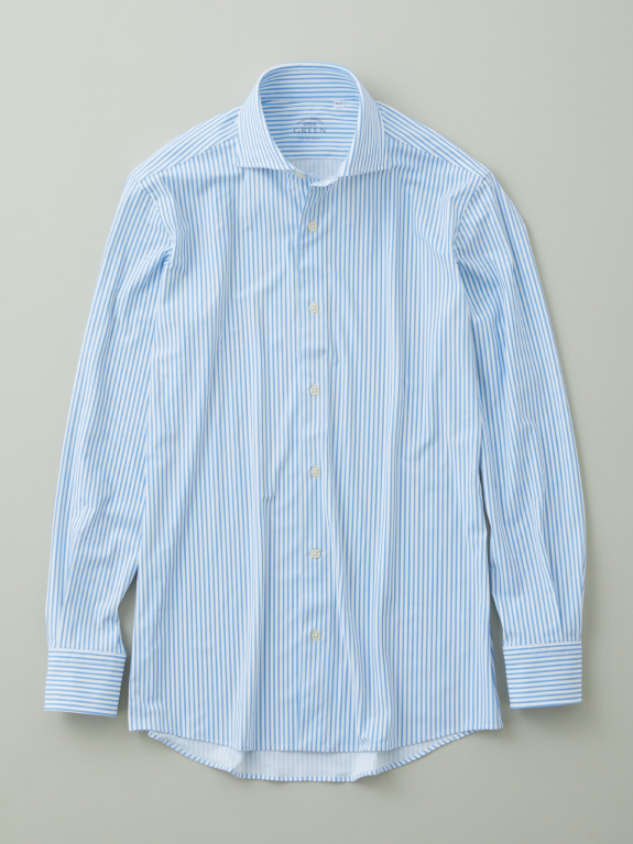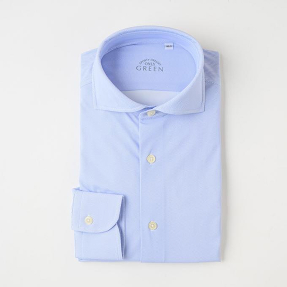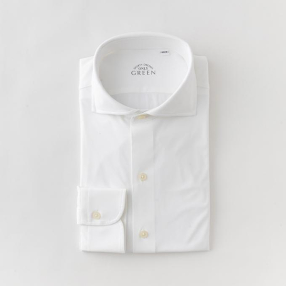 オンリーグリーンのドレスシャツは、高度なプリント技術によるコットンブロードクロスのような高級感を備えつつ、ジャージーならではの快適な着心地。襟やカフスの芯材にも伸縮性があり、締めつけ感を軽減しています。