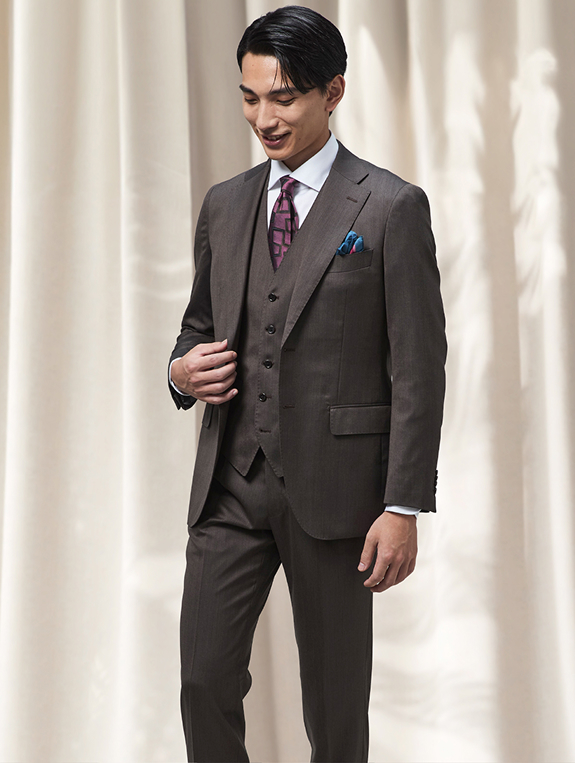 式典から家族との時間まで、一日を通して使いやすいブラウン。きちんと感の中に、温かみを添える一色。「極」ならではの艶感で野暮ったく見えず、若々しくエレガントに着こなせます。