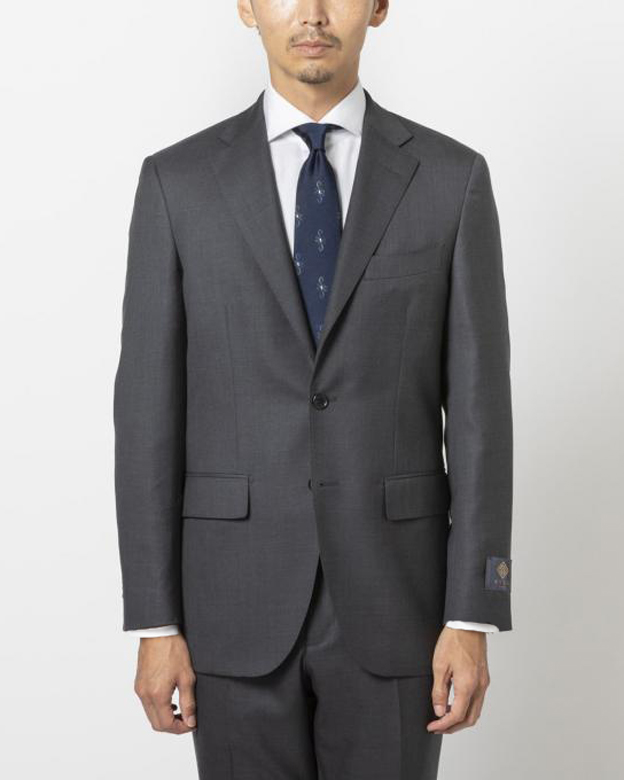 希少性の高い「タスマニアウール」の原毛、高級ランクのSUPER120’sウールを使用しているので、光沢があり、しなやかで美しいドレープ性のあるエレガントなスーツに仕上がります。