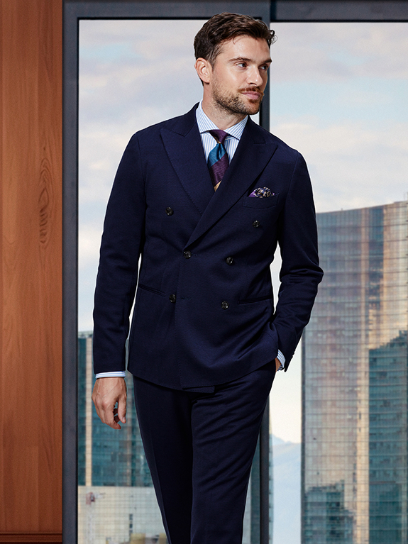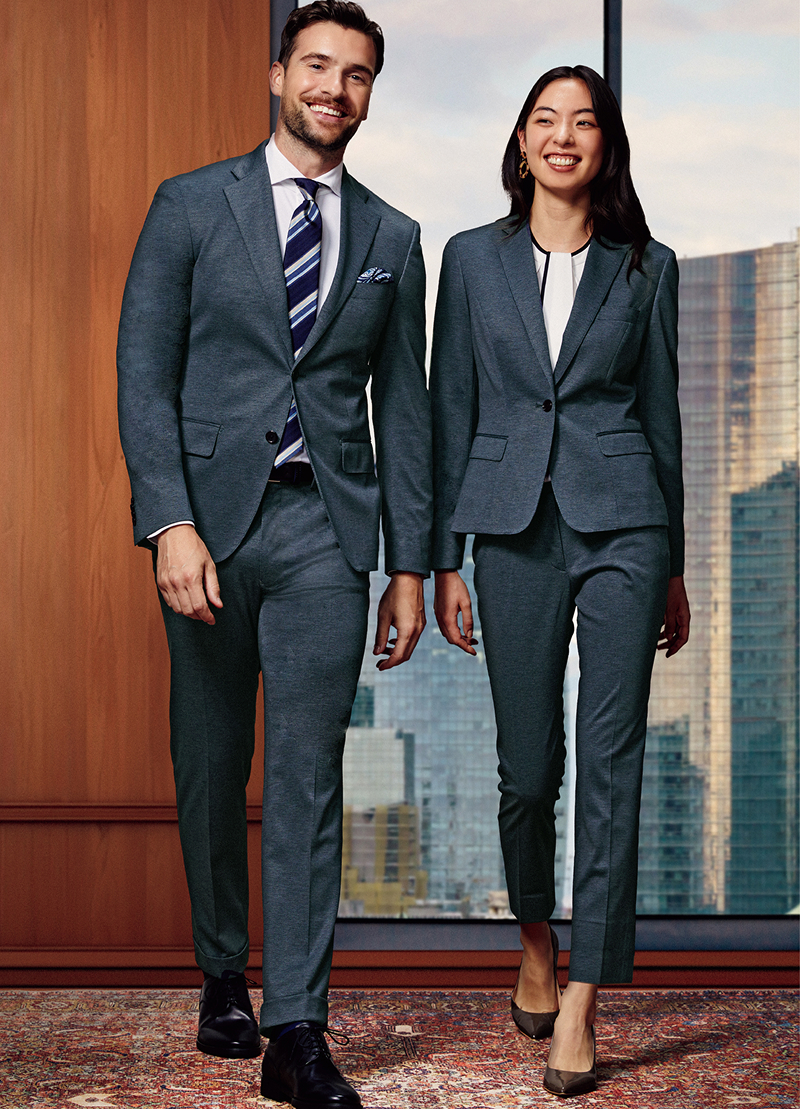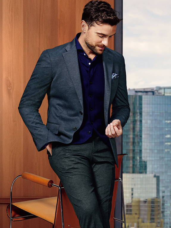 長時間移動も疲れにくいジャージー素材を用い、ひと揃えで幅広いコーディネイトが可能なセットアップを提案する「トラベラー ジャージー」。チャコールのバーズアイ素材を用いた新作は、軽量でシワになりにくく、オールシーズン着用可能で、合繊生地ながらも、ウール見えする上品で高級感のある表情。まさしく出張にうってつけなセットアップです。