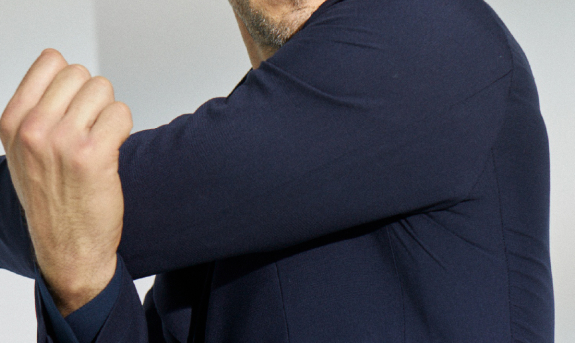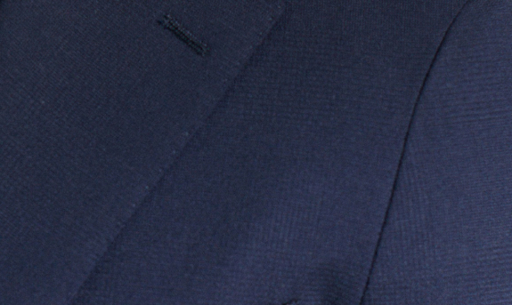 伝統的なイタリアの仕立てを手本に、独自に発展させたオンリーの仕立て。首元に美しく沿う一枚襟や立体的な肩周りにより、凛々しく見えます。