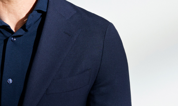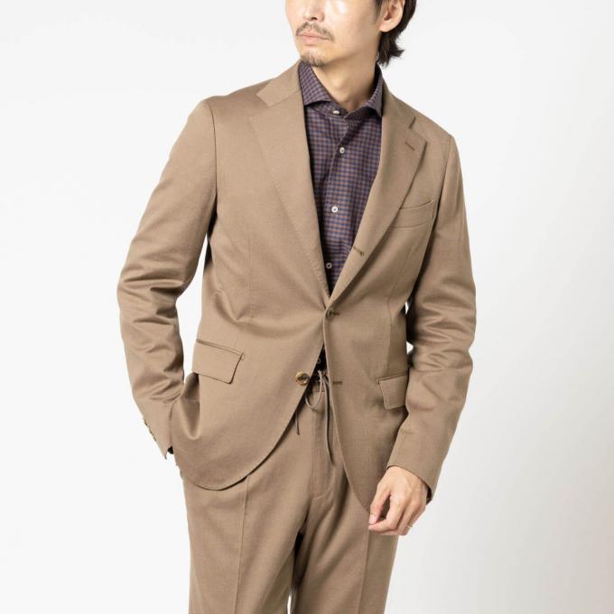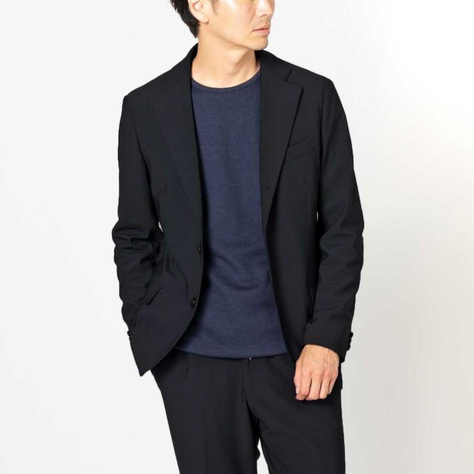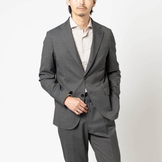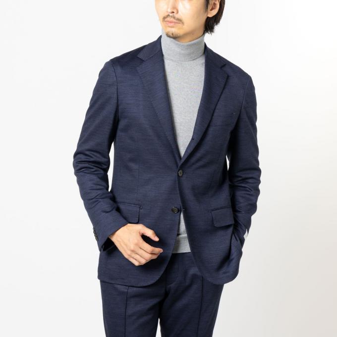 イタリアの老舗レダ社が開発した「レダアクティブ」のジャージー生地は、リヨセルとウールを混紡。ジャージーならではのしなやかな肌触りとストレスフリーなフィット感を実現。オールシーズン使え、パンツはクリースをたたき仕上げにし、高級感のある見た目は保ちつつ、スポーティさを演出。