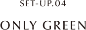 深みのあるグリーンのツイード調生地の表情を、伸縮性抜群のナイロンポリウレタンジャージーに転写プリントした生地使用のセットアップ。落ち着きのある表情とは裏腹に、驚くほど軽やかな着心地です。