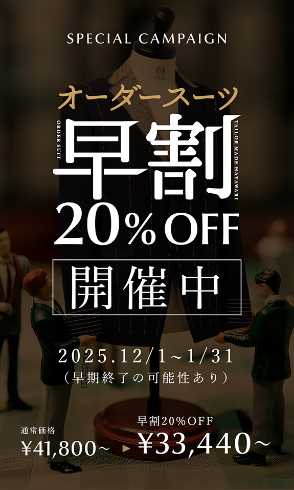 - 仕事にも使える汎用性があり、早割でお得な1着が作れます(20%OFF)