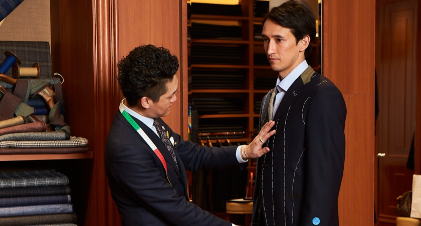 Having made tailored suits for 50 years, he knows how a suit should be made when he touches the fabric. He becomes actually one of the great master of tailors as he won the best award of “Takamatsunomiya expertise encouragement award” at the 25th Japan men’s clothes technical contest. The dress patterns drawn by his creates the best silhouette and comfort to wear.