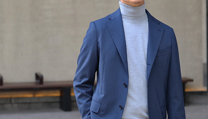 インナーをニットに替えれば、ほどよくリラックスした印象に。イタリア製のタートルネックの風合いを活かすことで、オフィスワークやオフタイムにもぴったりの抜け感が生まれます。
