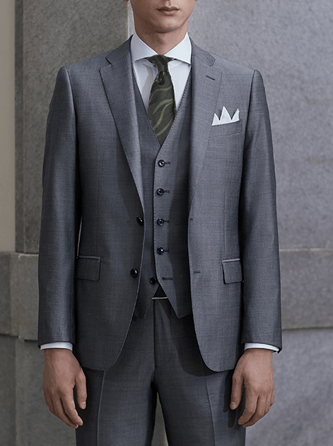 控えめに光を受けるシルクウールの質感が、フォーマルにもビジネスにも映える上品な陰影を生む一着。スリーピースにより、特別な日の華やかさを演出します。程よく構築的なショルダーとウエストシェイプが特徴のマンハッタンモデルはスマートなシルエットを形成。どの角度から見ても、着る人のラインを美しく整えます。