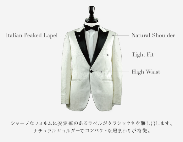 拝絹付きラペルがもたらすのは、タキシードのようなエレガントさ。フォーマルシーンはもちろん、普段のスタイルにさらりと取り入れても、上品で洗練された着こなしを楽しめます。