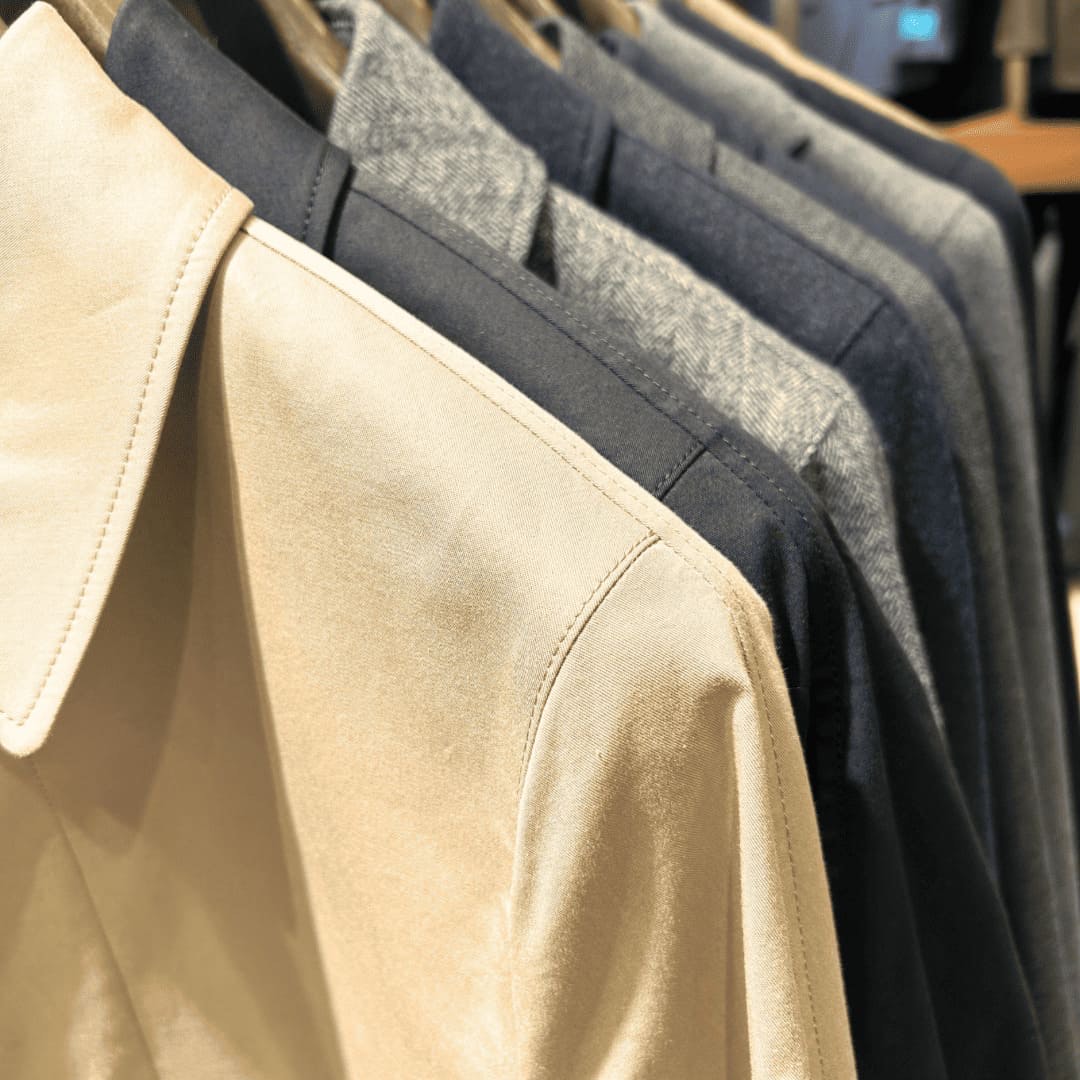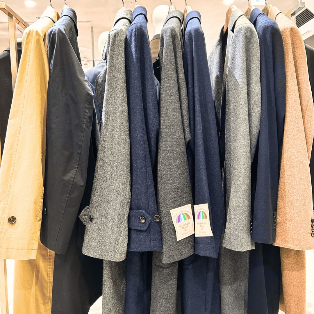 左から コットンステンカラーコート PRICE:¥49,500(税込) イタリア「OLIMPIAS社」の自社で撚糸したコットンを使用し、横糸にはポリウレタンを混紡した ストレッチ素材を表地に使用しています。 中綿ライナー入りで秋冬だけでなく春先まで着用可能です🌸 ウールラグランステンカラーコート PRICE:¥49,500(税込) ウール素材の生み出すエレガントで高級感のある表情がスーツに見合う作りになっています⌚✨ スプリットラグラン仕様を採用したステンカラーコートは、 定番でクラシックな型ながらも根強い人気を持つ1着です❕❕ パラシュートウールバルカラーコート PRICE:¥60,500(税込) 生地自体に膨らみをもたせることで凛々しい仕立て映えが実現され、温かみがあるのに軽量な仕上がりです🍃🍃 スーツとの相性ももちろん抜群で、同様の生地を使ったパラシュートウールスーツと合わせて スリーピース風に着こなすのもお洒落です。 カシミヤ100%シングルチェスターコート PRICE:¥96,800(税込) カシミヤ100%で作られたコートは暖かさもさることながら、一層の高級感が感じられます💎✨ より上質感溢れるコートは、スーツやジャケットはもちろん、ニットの上に羽織るだけでも様になります⛄💼 一度手に取り羽織っていただければ、その魅力と価格を超える価値を感じて頂ける1着となっております。 すべてのコートが高度なテーラーリング技術を備えたスーツ工場での生産により、 着心地の軽さと柔らかな肩まわりを実現されています! スーツ屋らしく、スーツの上に羽織っていただくことを想定したお作りとなっておりますので、 中のだぶつきなどの不快感が少ないです👏👏 ぜひ、お好みのコートを手に取ってみてください~~👐 文字がたくさんになってしまいましたが、最後までご覧いただきありがとうございました! グンと冷え込んできましたので、体調にお気を付けてお過ごしくださいませ。