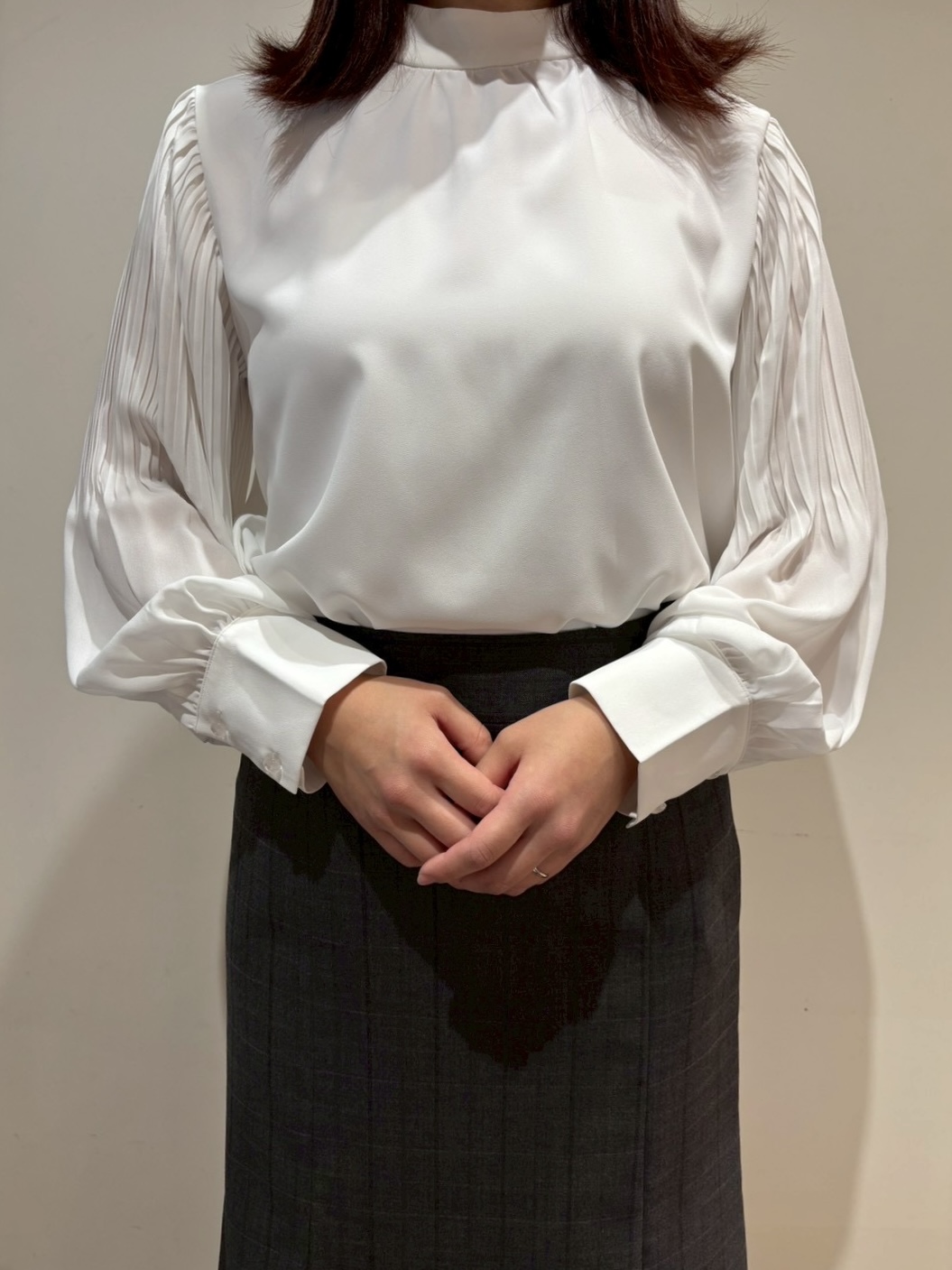 袖のプリーツがかわいいボトルネックデザインのカットソー♪