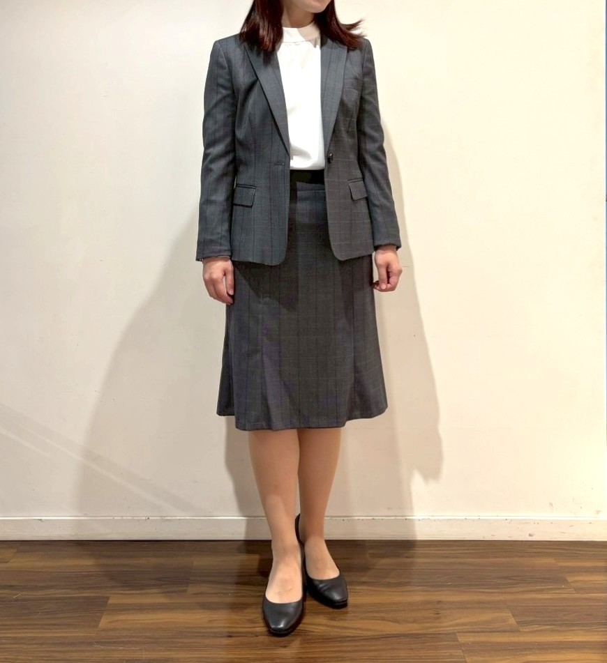 今回はチェック柄がかわいいスッキリシルエットの色違いスーツをご紹介致しました(*^^*)
