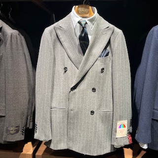 上でご紹介いたしましたメリノジャージーシリーズのダブルブレストバージョンです◎
