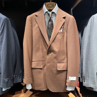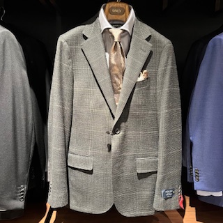 “ジャージー”という言葉からは想像もできないほどの品格と快適な伸縮性を兼備したスーツは、普段ジャケットやスーツを着なれない方にも非常にオススメ!