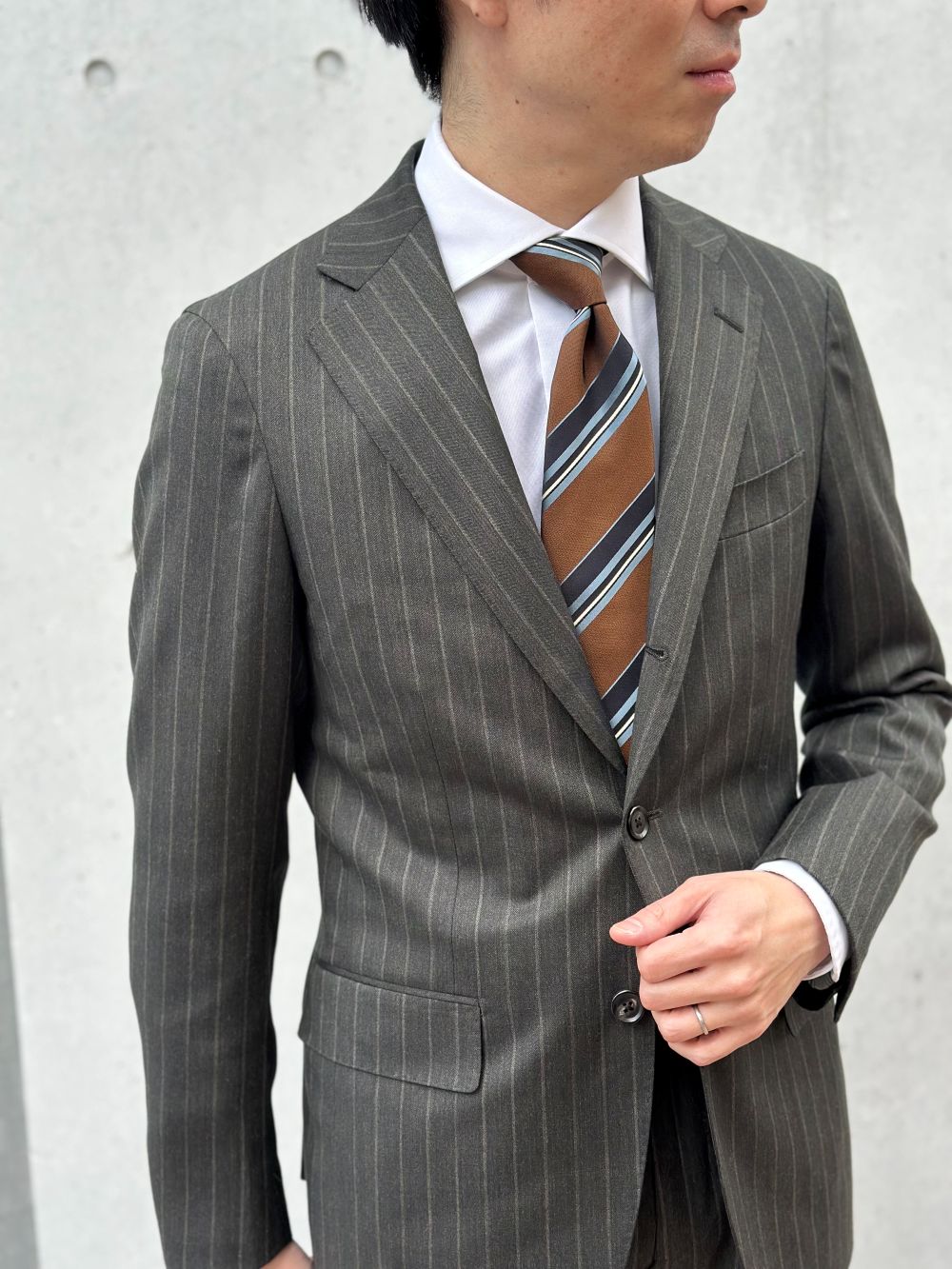 今回は明るいブラウンのタイでよりイタリアらしいお洒落な着方をイメージしました😊