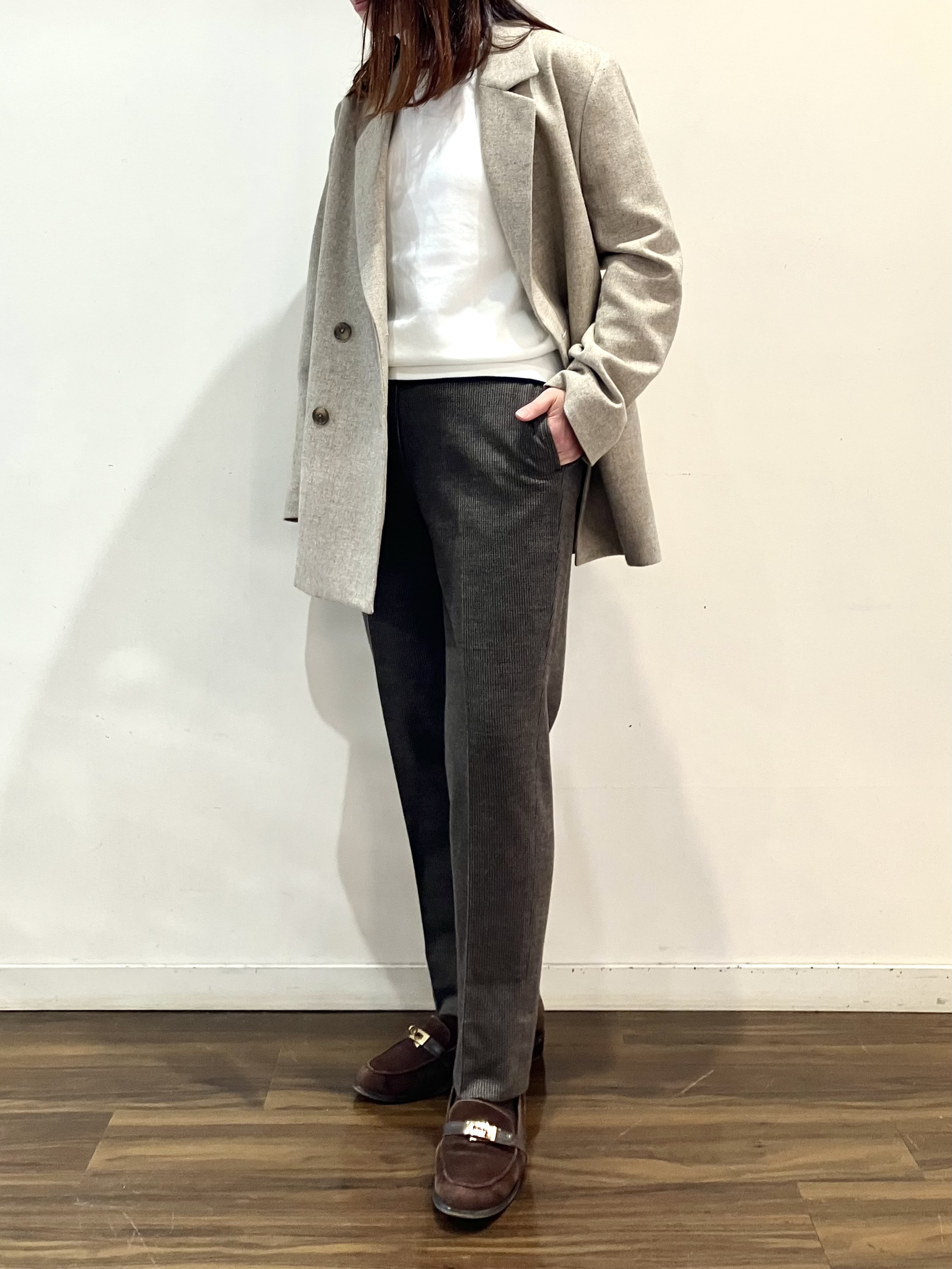 インナーとジャケットを変えるとラフな着こなしになります♪