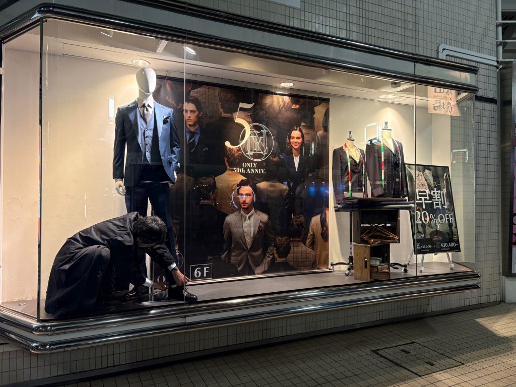 1月の極寒の中、吉祥寺パルコ1階正面入り口のウインドウに、