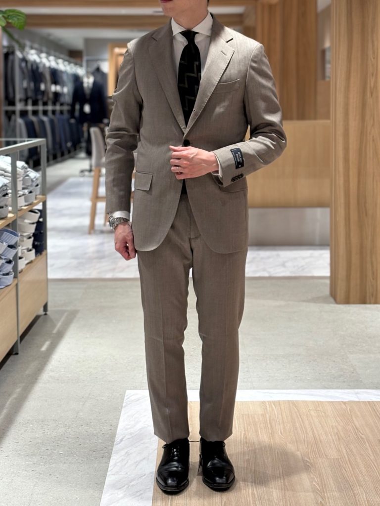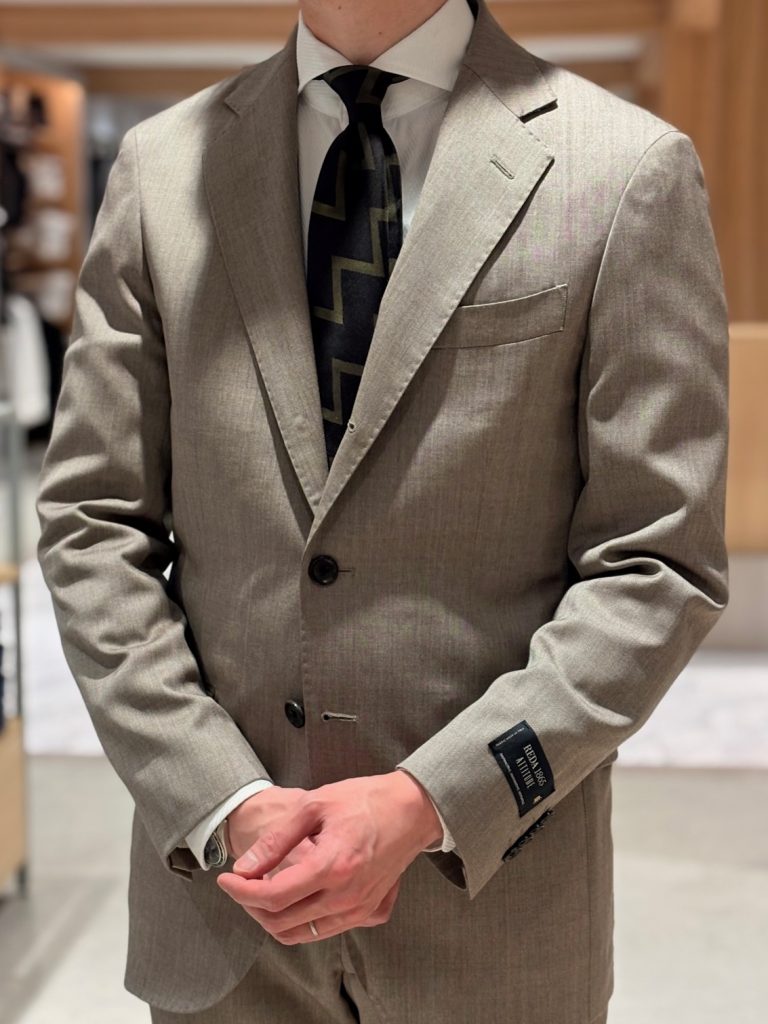 イタリアの生地メーカー「REDA」の生地で仕立てた上品で華やかなベージュカラーのスーツが入荷いたしました!