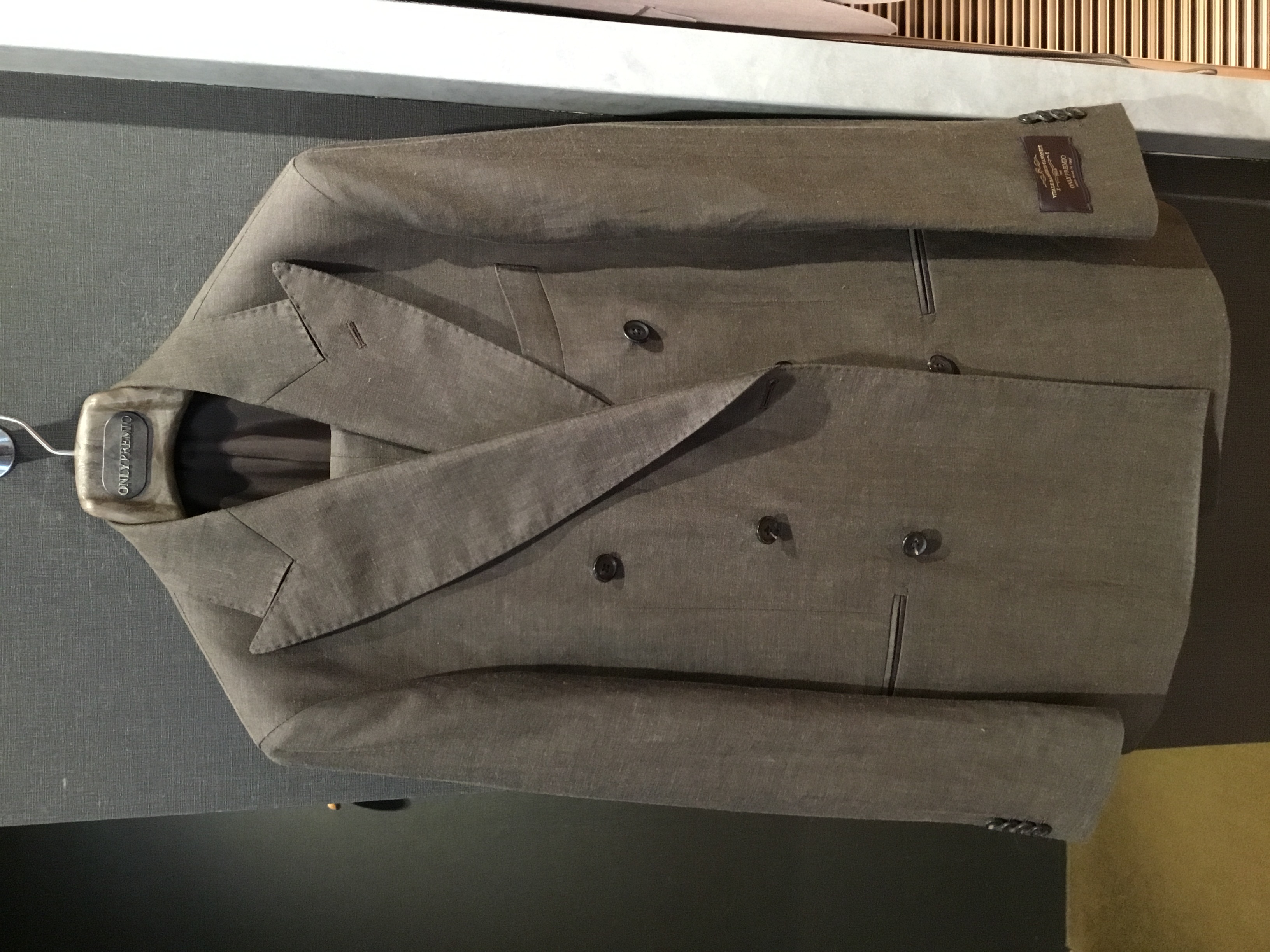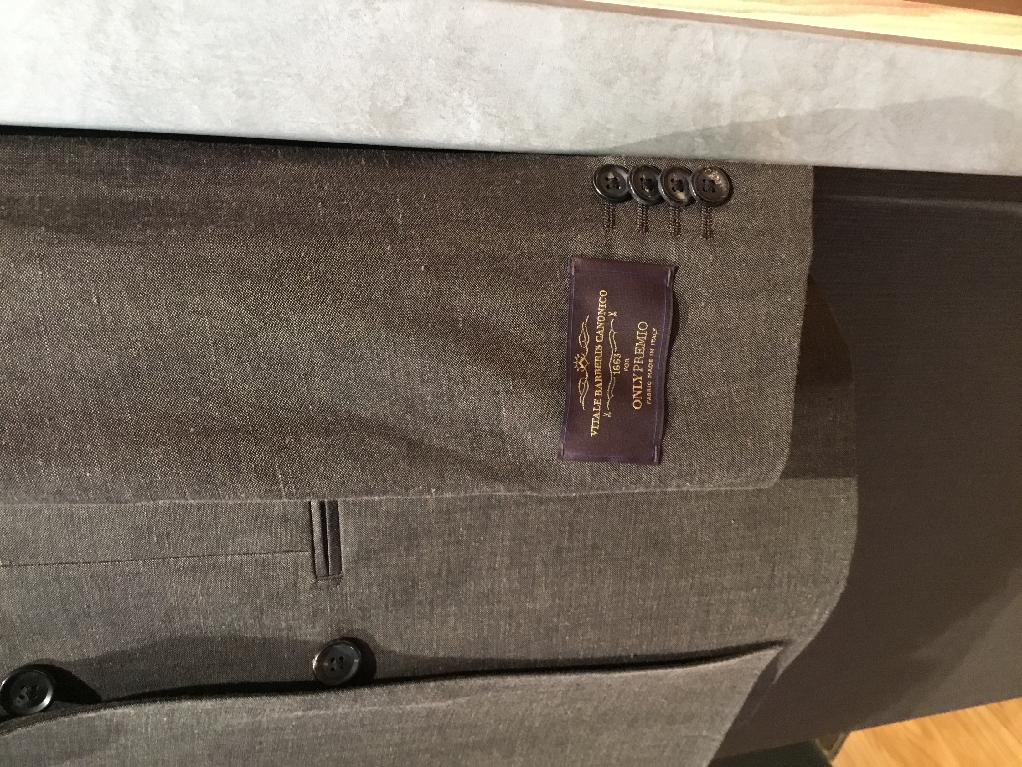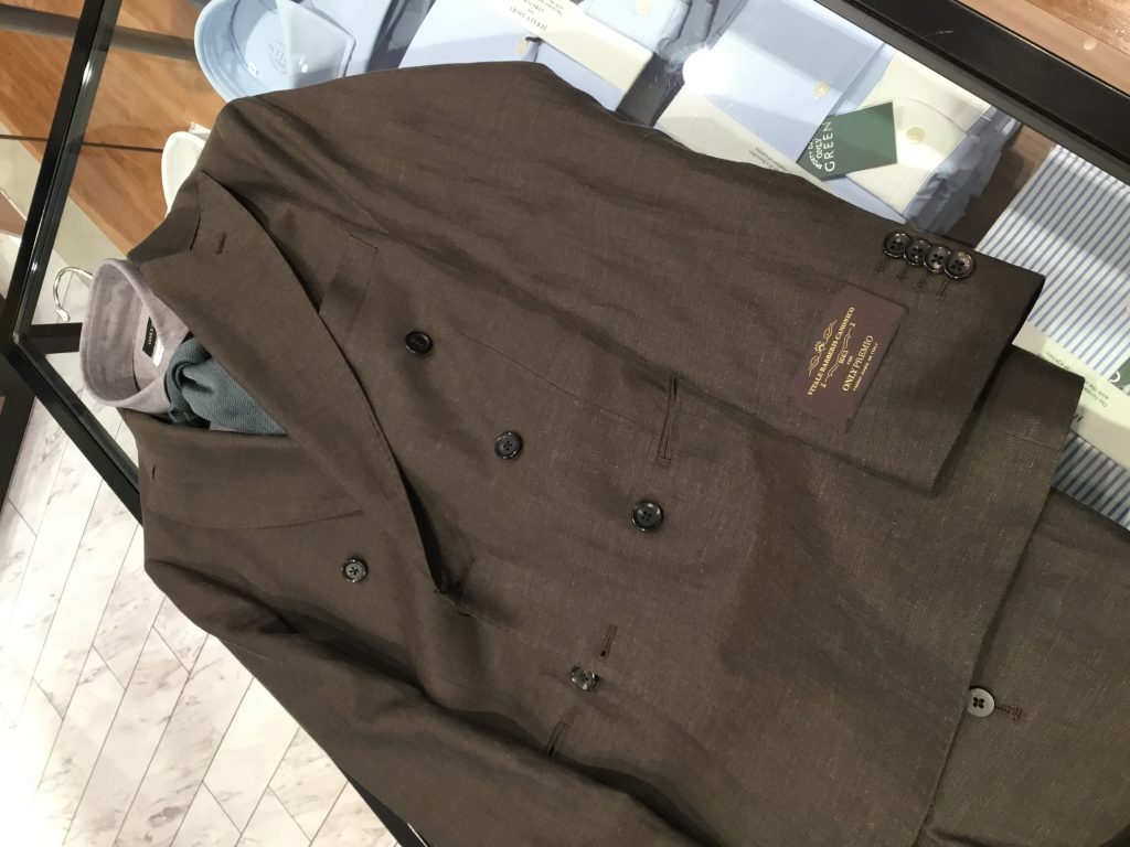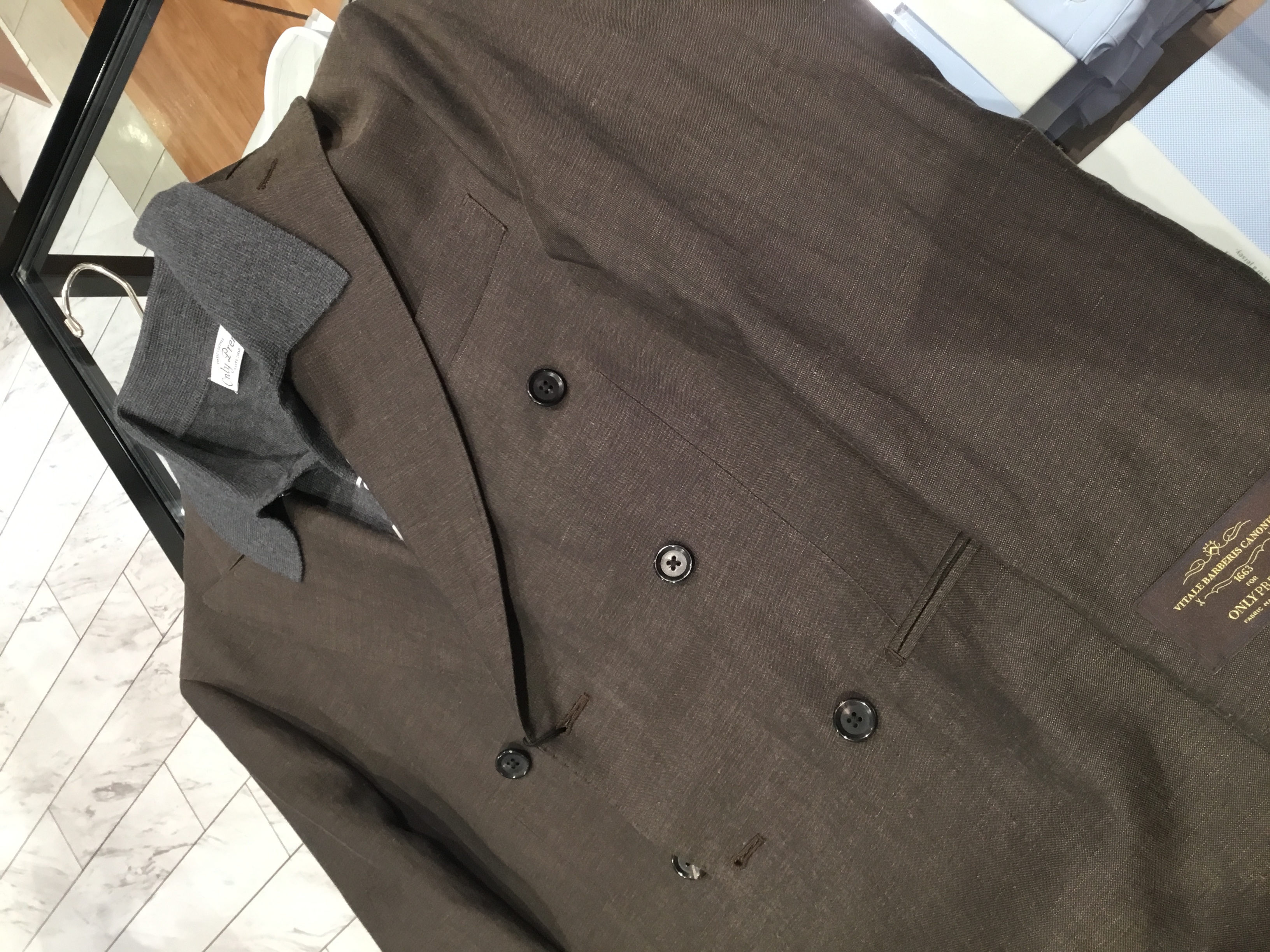伊VBC社ウール、リネンの2者混 ブラウンのダブルスーツです。