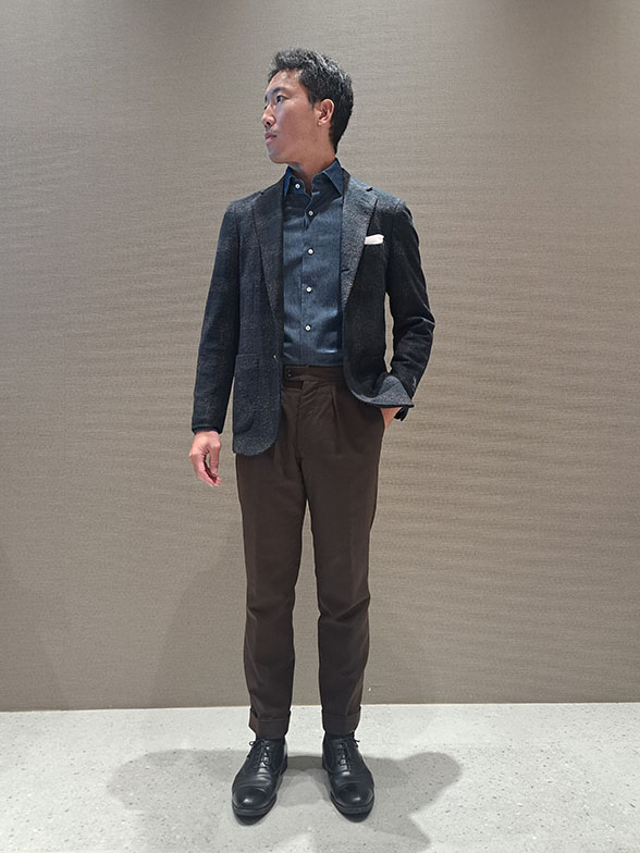 オーダースーツはもちろん、ビジネスシーンからカジュアルな場まで幅広いシーンに対応できる既製品アイテムも多数ご用意しております。