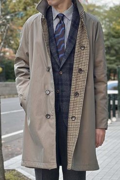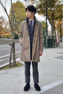 今回は濃色スーツと相性の良いブラウンベージュを主役に、ビジネスはもちろんオフの日にも活躍する一着です。