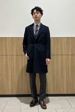 凛としたたたずまいのカシミヤシングルチェスターコート。